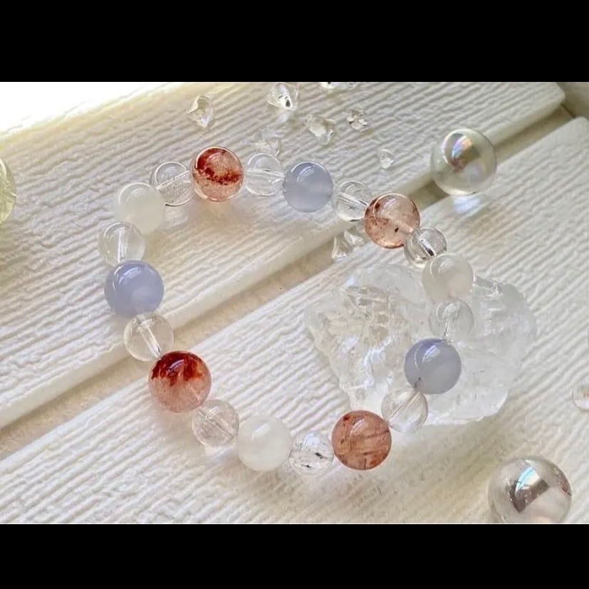 ブルーレースアゲートとホワイトムーンストーンの爽やかな色味を基調に、