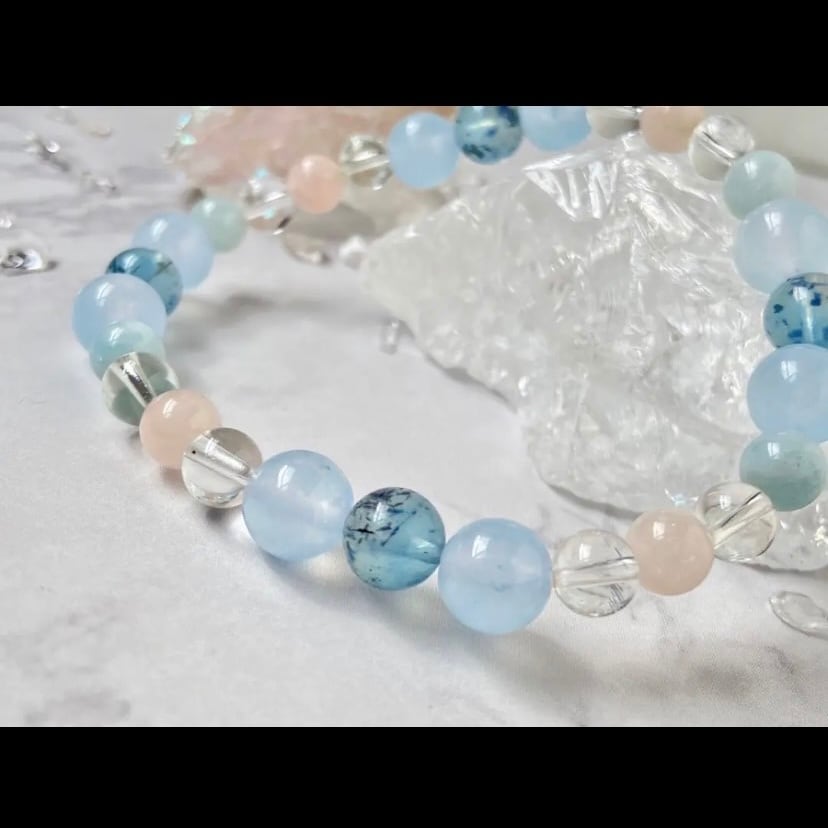 青が強いアクアマリンと、色んなタイプのアクアマリンにモルガナイトを忍ばせました。