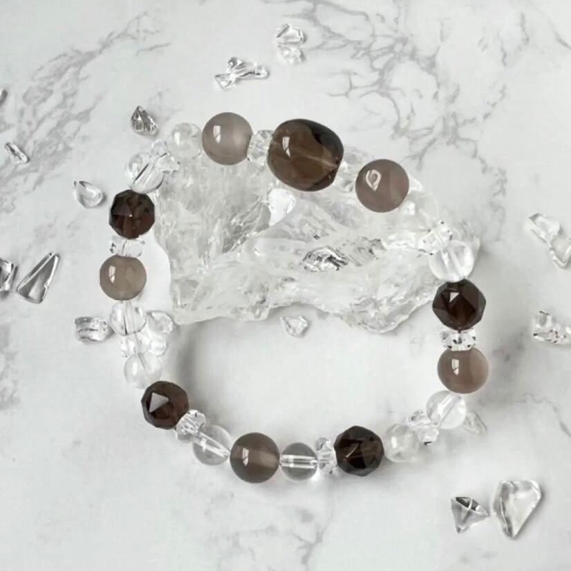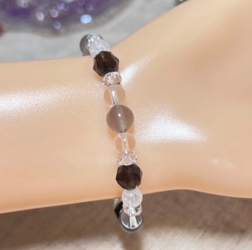 石の素材...スモーキークォーツ(タンブル、カット)、グレームーンストーン、セリサイトインクォーツ、水晶