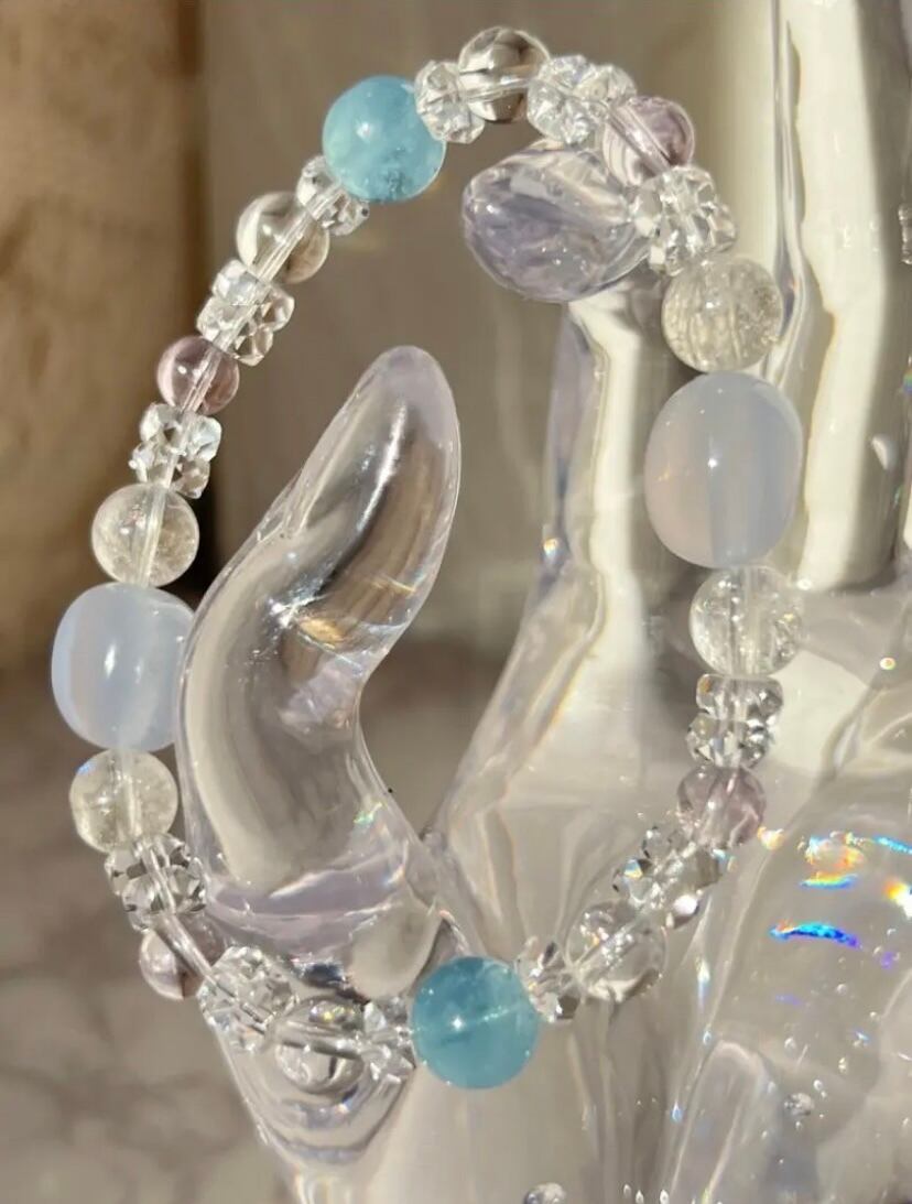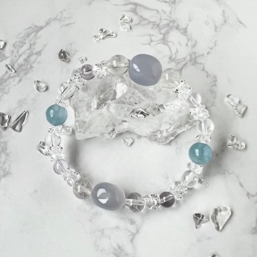 かわいいブルーレースアゲートのタンブルをメインに使用した、透明感を意識したデザインです。