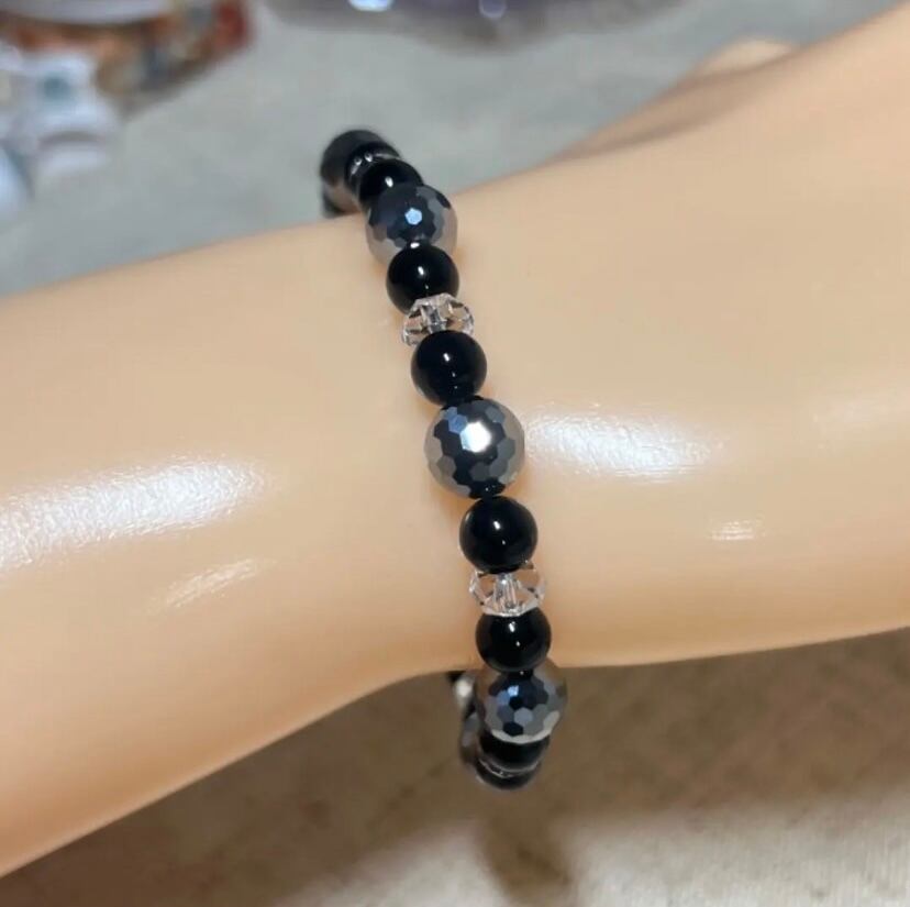 石の素材...ブラックスピネル、テラヘルツ(ミラーボールカット)、水晶