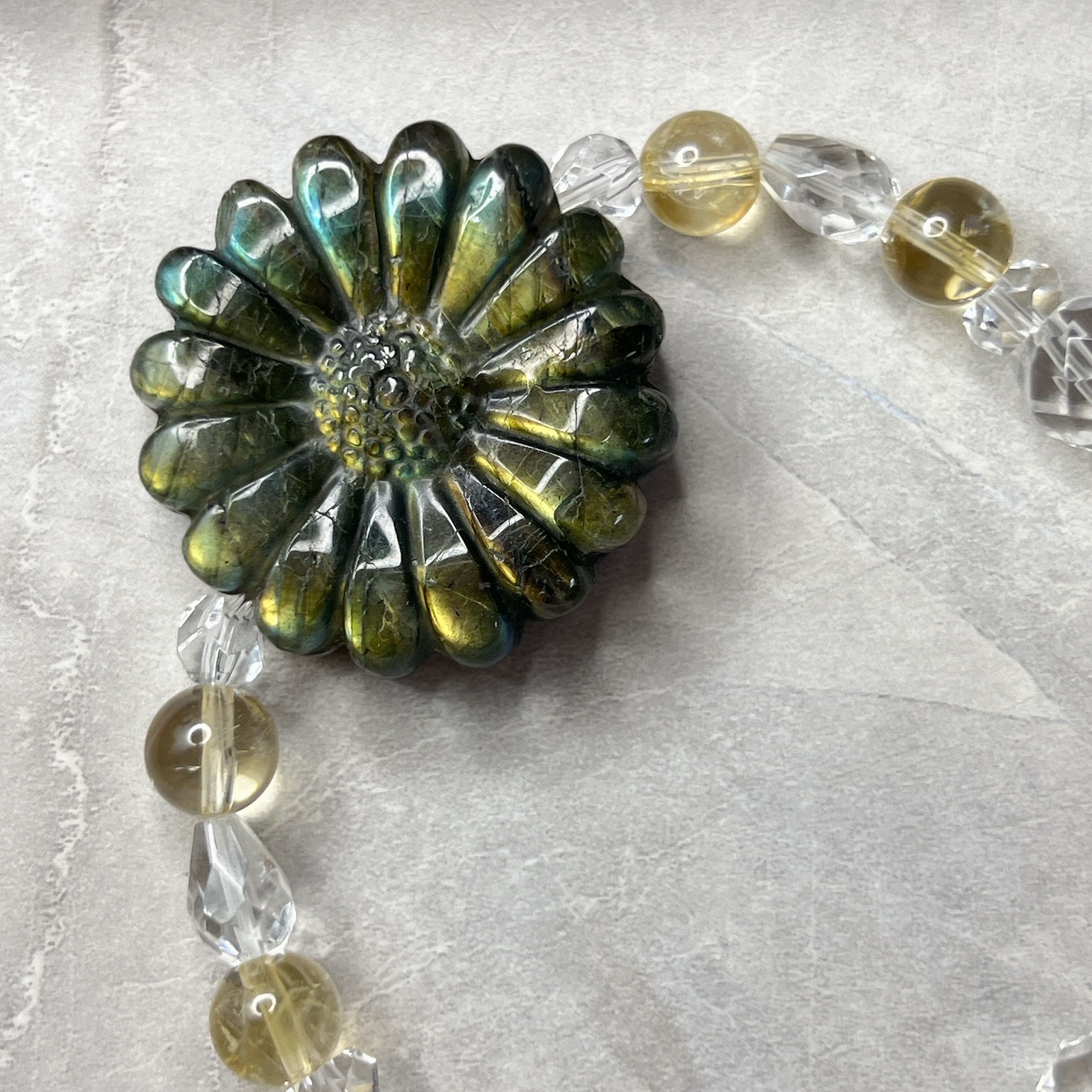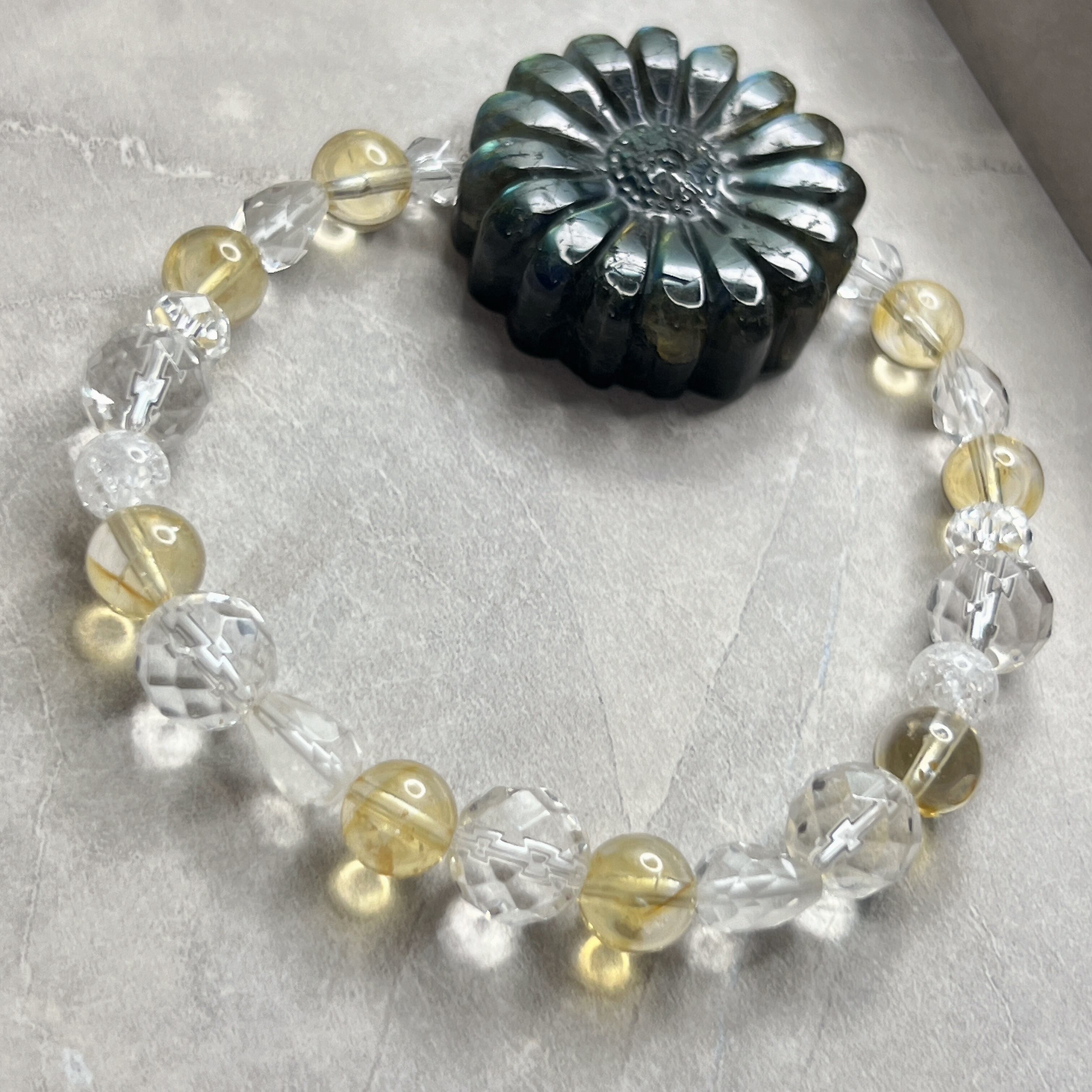 使用した天然石…非加熱シトリン,水晶(雫型,ロンデル,カット),クラック水晶