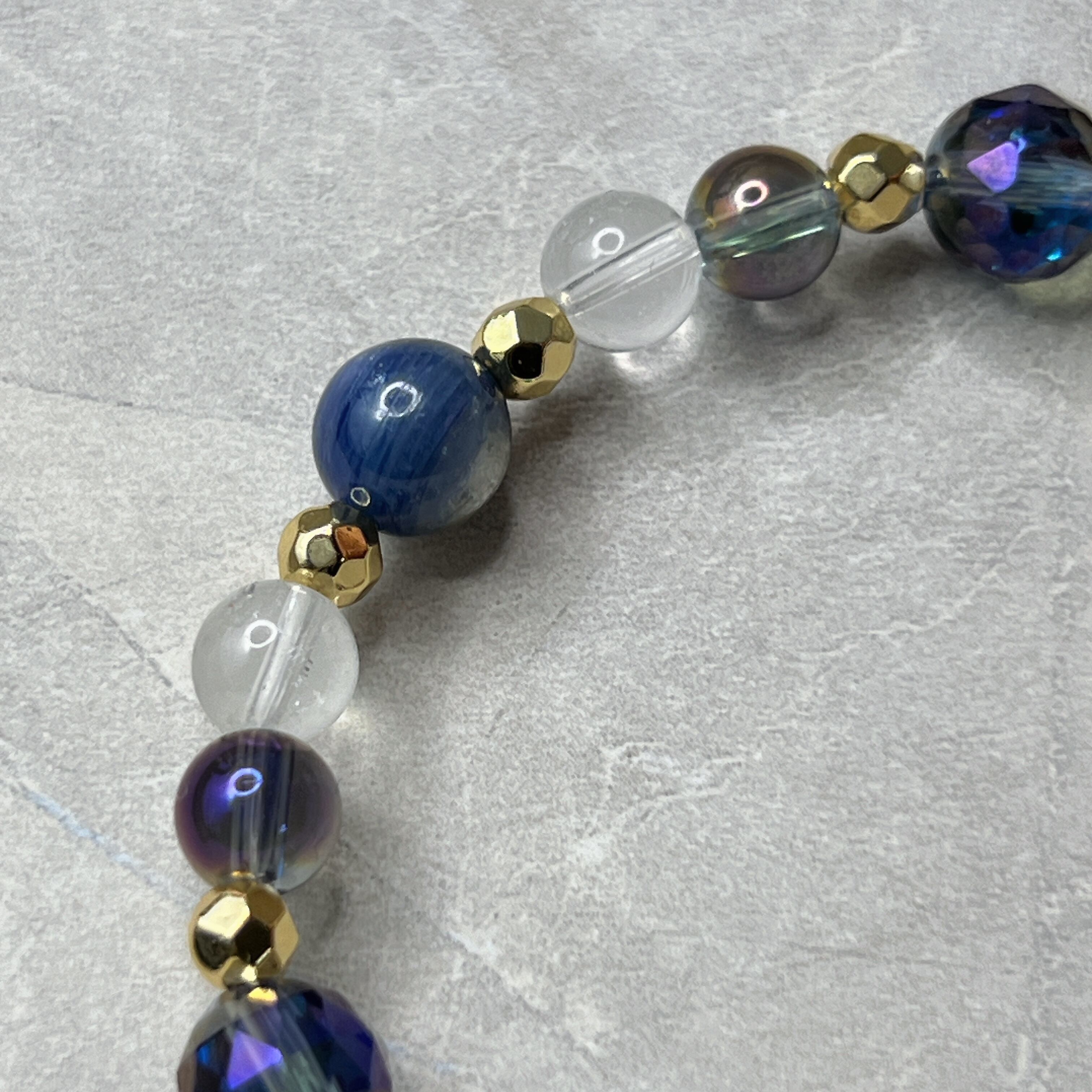 使用した天然石…ブルーオーラクォーツ(カット),ブラックオーラクォーツ(ラウンド),カイヤナイト,ヒマラヤ産水晶,クリアクォーツ(スターカット),アイリススモーキークォーツ