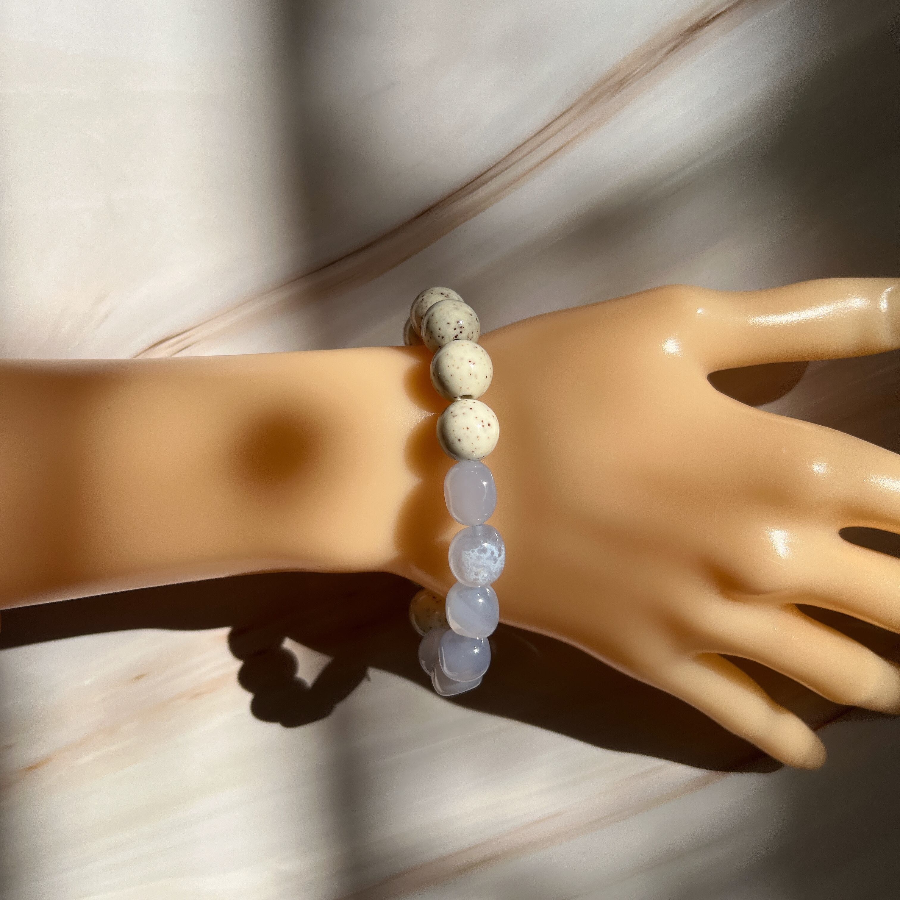 天然石ブレスレット 北投石xブルーレースアゲート 15cm